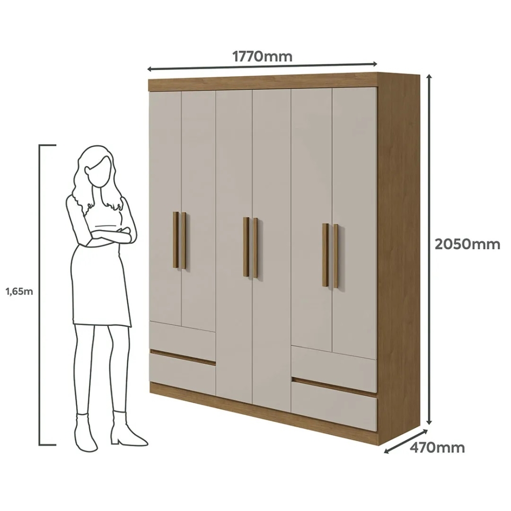 O Guarda-roupa Zeus 6PTS combina bem com qualquer espaço e se adequa perfeitamente aos dormitórios com espaços limitados, sem deixar de acomodar os itens necessários à rotina e mantendo o quarto sempre em ordem.