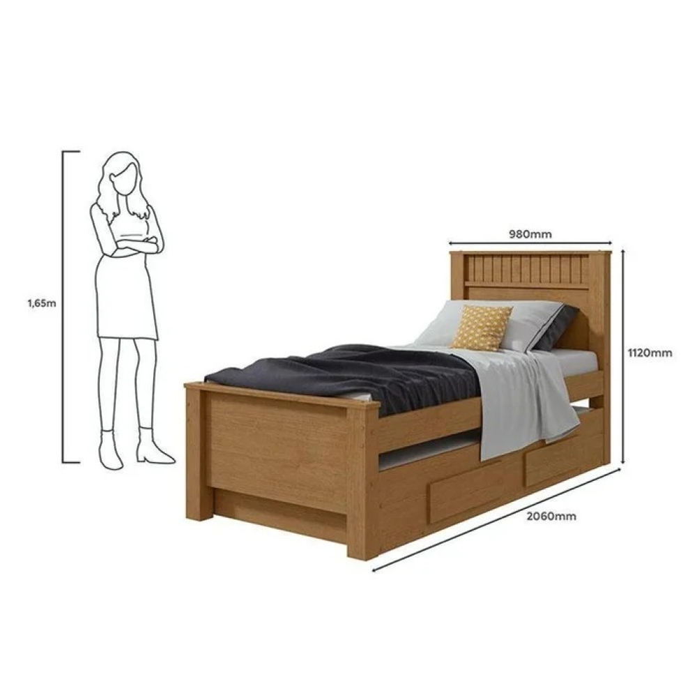 Acompanha cama auxiliar com gavetas práticas