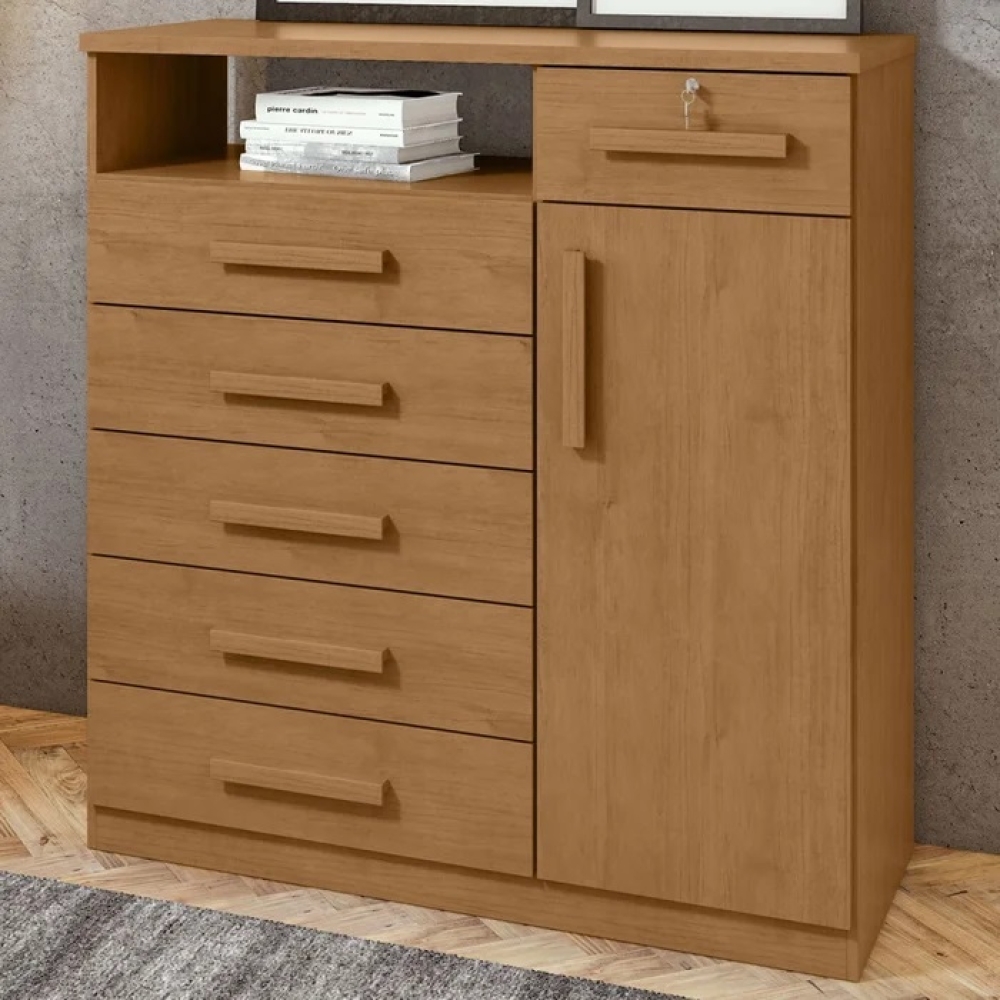 A Cômoda Da Vinci 1 Porta 6 Gavetas Amêndoa Clean da Móveis Lopas é fabricada em MDP com acabamento em pintura UV de brilho brilhante. Seu design moderno proporciona sofisticação e funcionalidade para o ambiente.