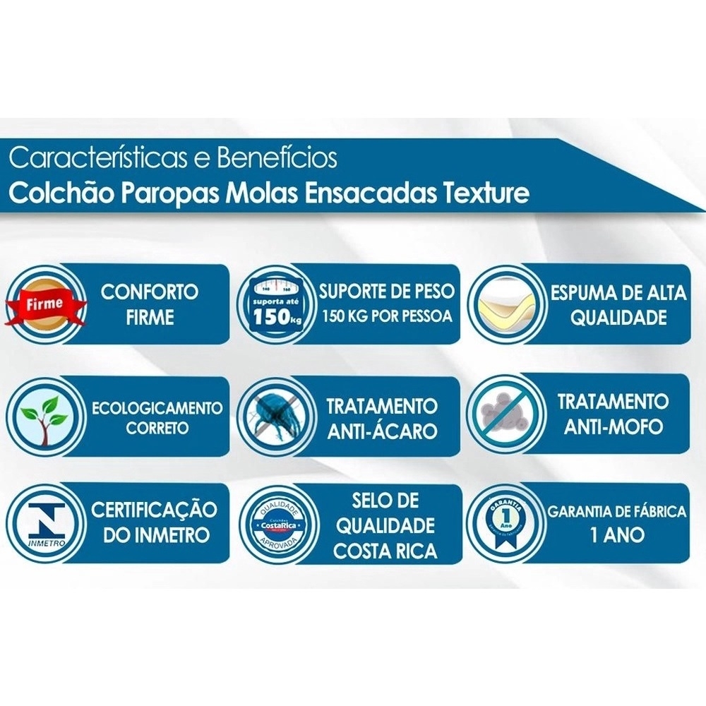 Com uma construção robusta e acabamento sofisticado, o Colchão Texture é a escolha ideal para quem busca durabilidade, suporte avançado e conforto extra firme em um único produto!